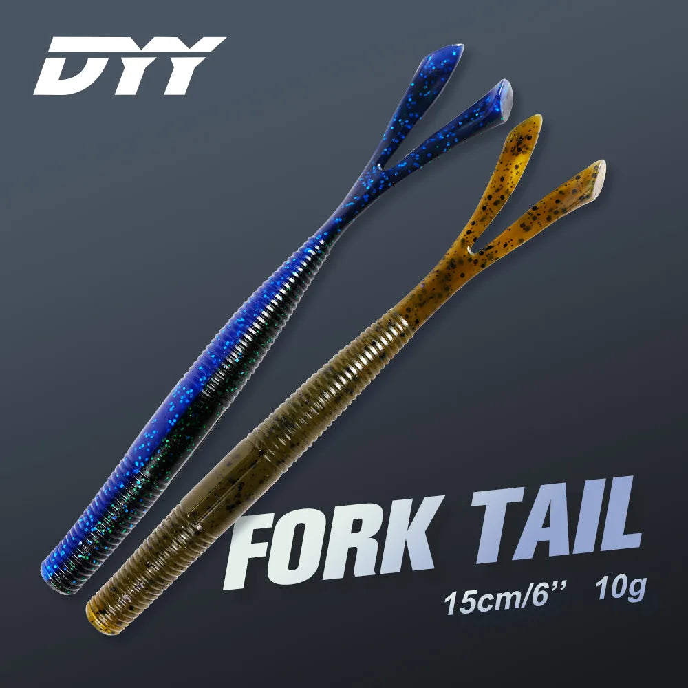 El DYY Fork Tail Stick es un señuelo de goma tipo stickbait con cola bifurcada, diseñado para atraer a depredadores como lucio, bass y perca. Su acción de nado natural y su perfil delgado lo hacen ideal para técnicas de pesca como el Texas rig, Ned rig o drop shot.
